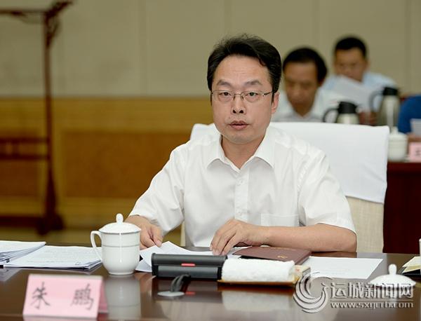 市委副书记、代市长朱鹏传达会议精神。 记者 雷哲侠 摄