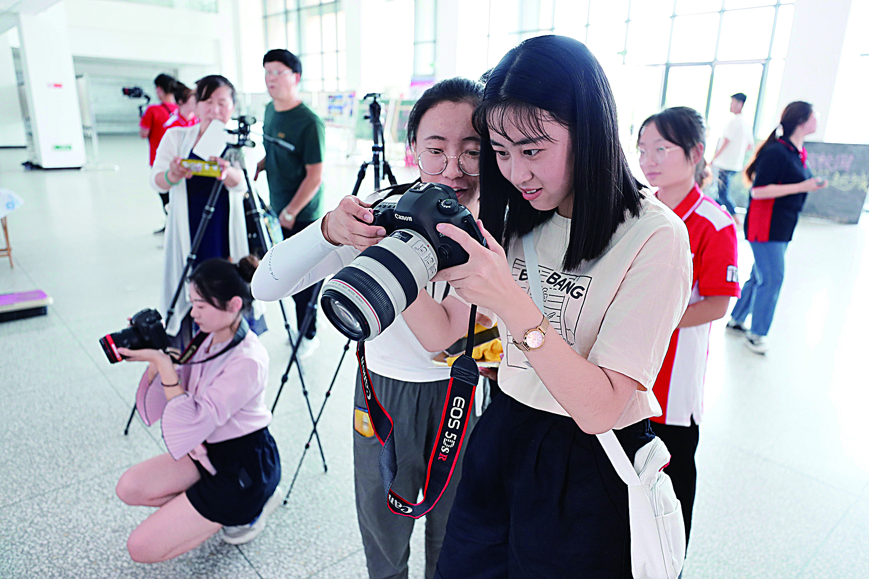 活动吸引了大批校园摄影爱好者,学生们近距离体验最新摄影器材,交流摄影技巧和心得体会。中国知名人文地理摄影师、新华社签约摄影师王永辉为校园摄影爱好者现场授课。“拍摄不是一件轻松的事,并不是人们想的‘走到哪拍到哪’。如何拍好照片?这不仅需要技术,需要合适的装备,克服早起、烈日、酷暑等客观条件,还需要一颗热爱摄影的心。”王永辉结合自己的作品以及在摄影方面的经历与感悟,为大家带来了一场精彩纷呈的视觉盛宴。