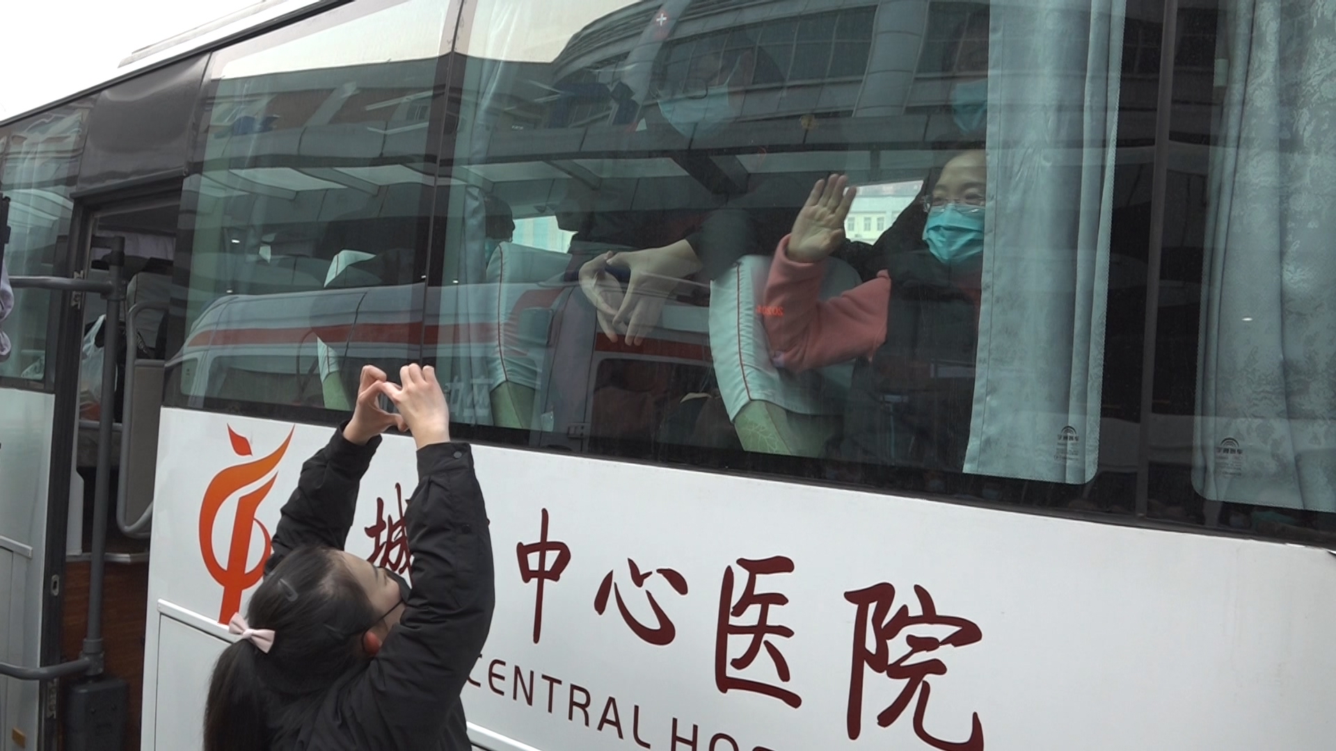 大巴车的发动机持续运行着,“嗡嗡”的震颤声似乎在催促送行的人们。一位30岁左右的女士轻轻拍打着车窗,想再多看一眼自己的爱人。车窗那头,听见拍打声的姜旭转过身来,用手隔着玻璃比了个“心”形,与妻子做着临行前的告白。