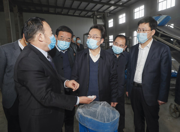 朱鹏在山西凯盛生物科技有限公司调研企业复工复产和农资保障情况。 记者 闫鑫 摄