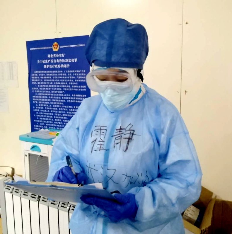 在丈夫张博的眼中,霍静是一个在生活中不拘小节、大大咧咧,但在工作中极其认真的“拼命三郎”。 谈到这次支援武汉,张博说:“霍静想去武汉的想法特别强烈。被选为运城第一批支援湖北医疗队后备队员,却没能一起出发时,她挺失落的。”随着疫情形势日渐严峻,霍静被确定为第二批支援湖北人选。“她每时每刻都在关注疫情新闻,关心山西医疗队什么时候出发和已经出发了几批。” 2月8日晚上,霍静和家人吃完元宵,就和队友陈晓静视频聊天。两人琢磨:山西救援队都出发了,咱们怎么还不出发,不会走不成了吧。讨论近1个小时,两人决定准备再写一份请战书发给护理部陈晓霞主任。张博说:“我记得非常清楚,在凌晨1点40分,霍静接到了通知出发的电话。我们赶紧收拾行李,送她与大家会合。孩子们都在睡觉,也没有给他们说。直到第二天我回到家,女儿问行李箱怎么不见了,才知道她妈妈去武汉了。” 2月9日,霍静一行人到达武汉,被分配到武汉市江汉方舱医院。2月12日,第一天进舱,各项操作的流程、制度还未完善,患者数量多,大家都是摸着石头过河,忐忑不安。时间紧任务重,在没有专业防护培训的情况下,霍静主动挑起大梁,凭借自己20年的重症医护经验,认真仔细地为每位护理人员做好防护培训、消杀及感控工作。她每班都要进舱熟悉流程,下班后画好流程图分享在群里。霍静所带领的护理分队,每天能做咽拭子量140多个、采血100多位,引来别组成员请教“秘诀”。霍静出色的工作能力得到了大家的一致认可,被任命为管理3个护理小组的“大组长”。