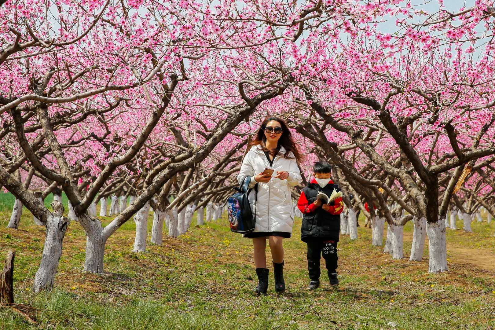 美哉桃乡笑春风 本报记者 金玉敏 摄