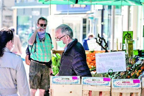 ▲4月8日,在法国巴黎近郊索镇,人们戴口罩外出。 近日,包括尼斯在内的法国部分城市要求居民外出必须戴口罩。其中,巴黎近郊索镇要求十岁以上居民外出戴口罩,如暂时没有口罩,可以用围巾等遮挡面部。新华社发