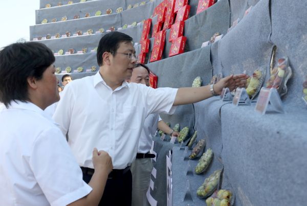 开幕式现场,枣林翠绿、枣香四溢。丁小强来到临猗县各乡镇的展台前,与现场正在进行网络直播销售的工作人员亲切交流,并通过网络销售平台向网友们推介临猗冬枣。随后,丁小强步入枣资源圃、智慧枣业设施大棚,向技术人员详细了解冬枣设施栽培、技术创新、品牌建设及绿色防控技术、无公害生产等情况。他强调,要将更多新技术应用到鲜枣种植和管理上,实现无公害绿色种植,进一步提升品质,注重品牌塑造和无公害检测,充分发挥农业品牌的引领、带动作用,让“临猗鲜枣”叫响全国、香飘世界。