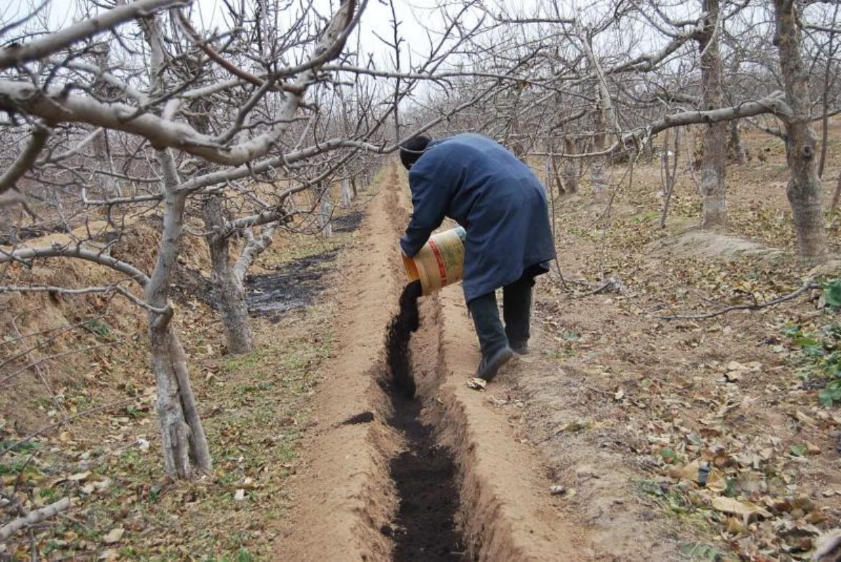 平陆县农民为苹果树深施有机肥 周军亮 摄
