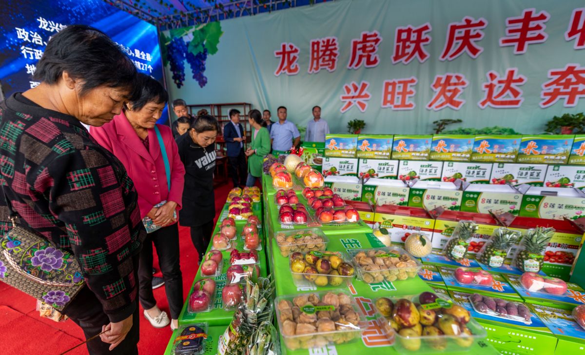 丰收的美景是用汗水浇灌而来的。当天的新绛县荀子广场,该县各乡镇使出浑身解数、拿出看家本领,各展区的一排排货架上摆满了各式各样、五彩缤纷的瓜果蔬菜,前来参观购买的人群络绎不绝。