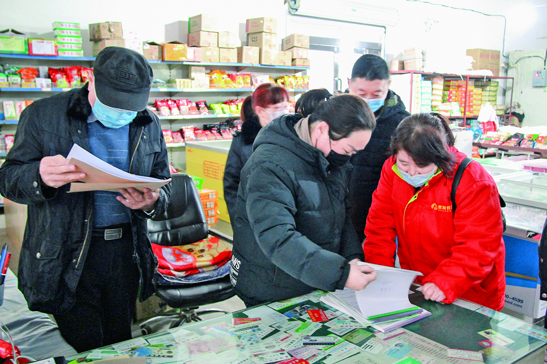 芮城县市场监管局城东监管所工作人员,查看冷链食品供应商资质。王露 摄