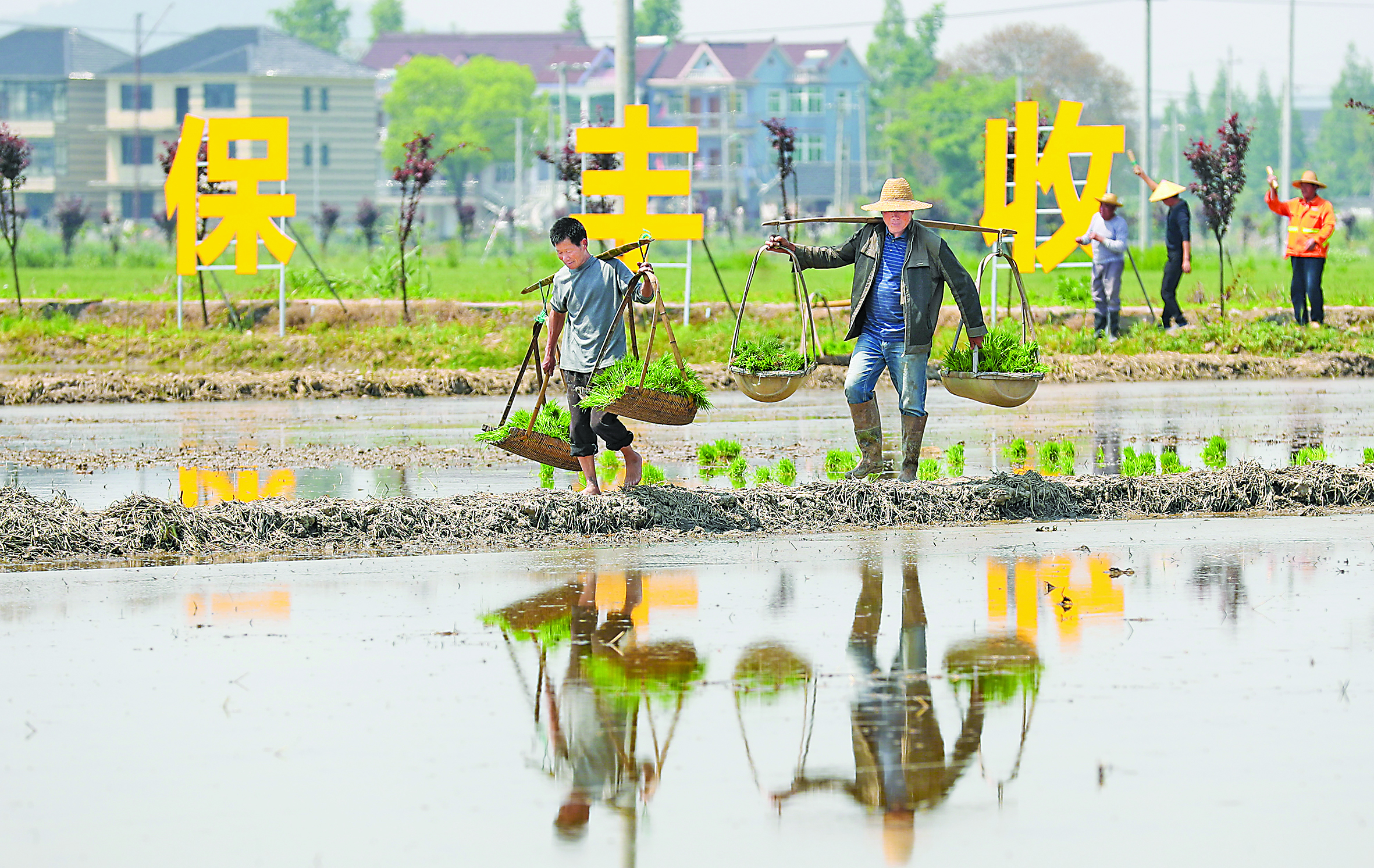 4月19日,村民在浙江省湖州市德清县下渚湖街道和睦村的农田里劳作。 4月20日是“谷雨”节气,各地农民抢抓农时,开展春种春管。 在传统农耕文化中,谷雨节气将“谷”和“雨”联系起来,表示降水状况和“雨生百谷”。谷雨节气后,气温升高,雨量增多,空气中的湿度进一步加大,极适合谷类作物生长。