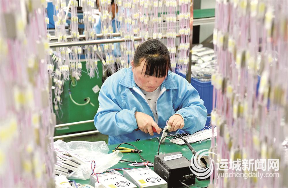 近日,垣曲县舜瞳光电子科技公司工人在加工LED灯带。该公司是退役军人雷国伟回家乡创办的。