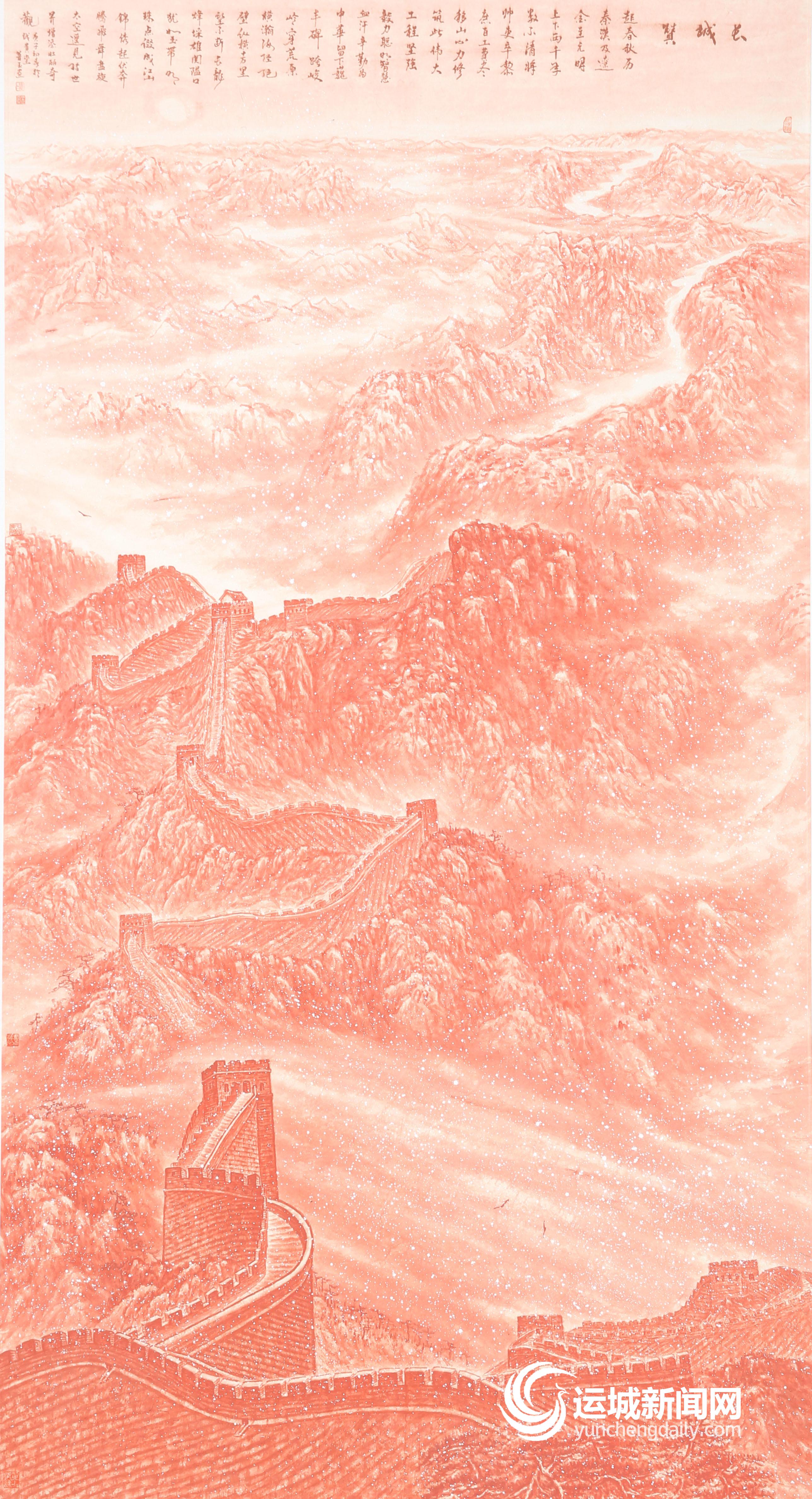 “以朱砂作画虽非独创,但以朱砂作大幅山水,成为系列,基色多变,浑厚华滋,构图饱满,意境雄阔,实乃大手笔!”一位北京画家参观画展后,赞叹不已。