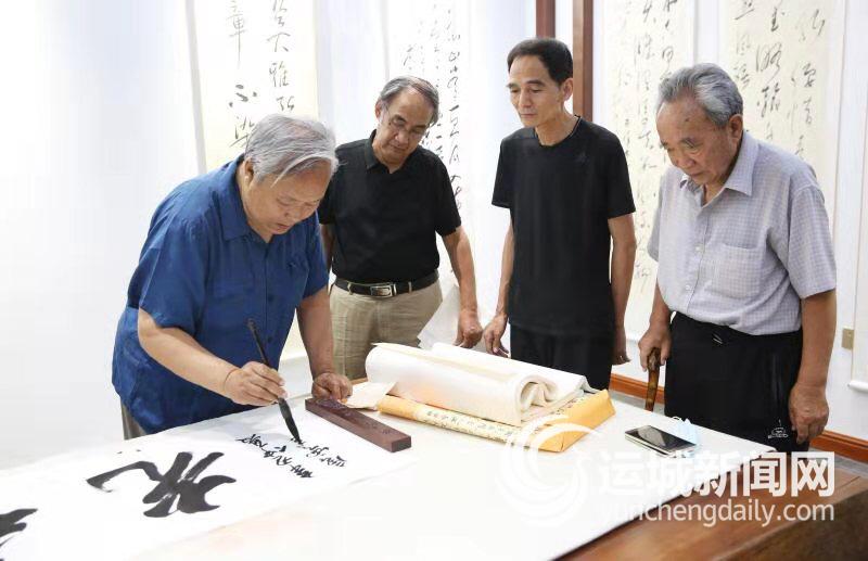 运城晚报讯(记者 景斌)6月26日、27日,中国书协多届理事、天津市书协原主席、中国楹联学会顾问唐云来(左一),莅运考察河东楹联文化,与我市联家交流书法艺术。