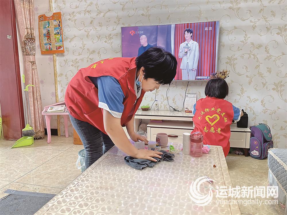 在八旬居民王桂英家,物业管家李谦带领保洁人员为老人擦玻璃、拖地、整理房间。李谦边干活边和老人拉家常,他告诉老人需要帮助就拨打他的电话。王桂英高兴地说:“谢谢你们来帮忙。”