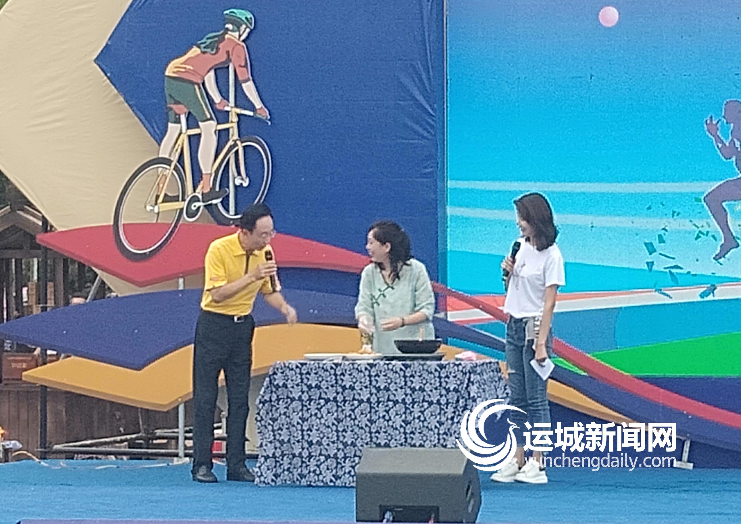 ▲孙正平(左)作为首席体验官在台上夸赞运城美食