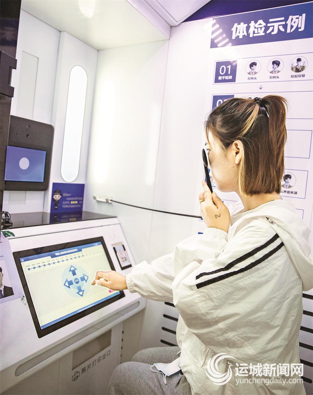 运城晚报讯(记者 樊朋展)驾驶证到期了怎么办?以往,期满换证,去医院体检肯定是少不了的。然而近日,市公安局交警支队引进“驾驶人自助体检机”,由机器代替医生为驾驶人体检,群众换证只用跑一趟,信息采集、体检、缴费就全都能搞定。这也是市公安局交警支队积极践行“我为群众办实事”实践活动,深化“放管服”改革,探索业务办理智能化应用推出的一项便民服务。
