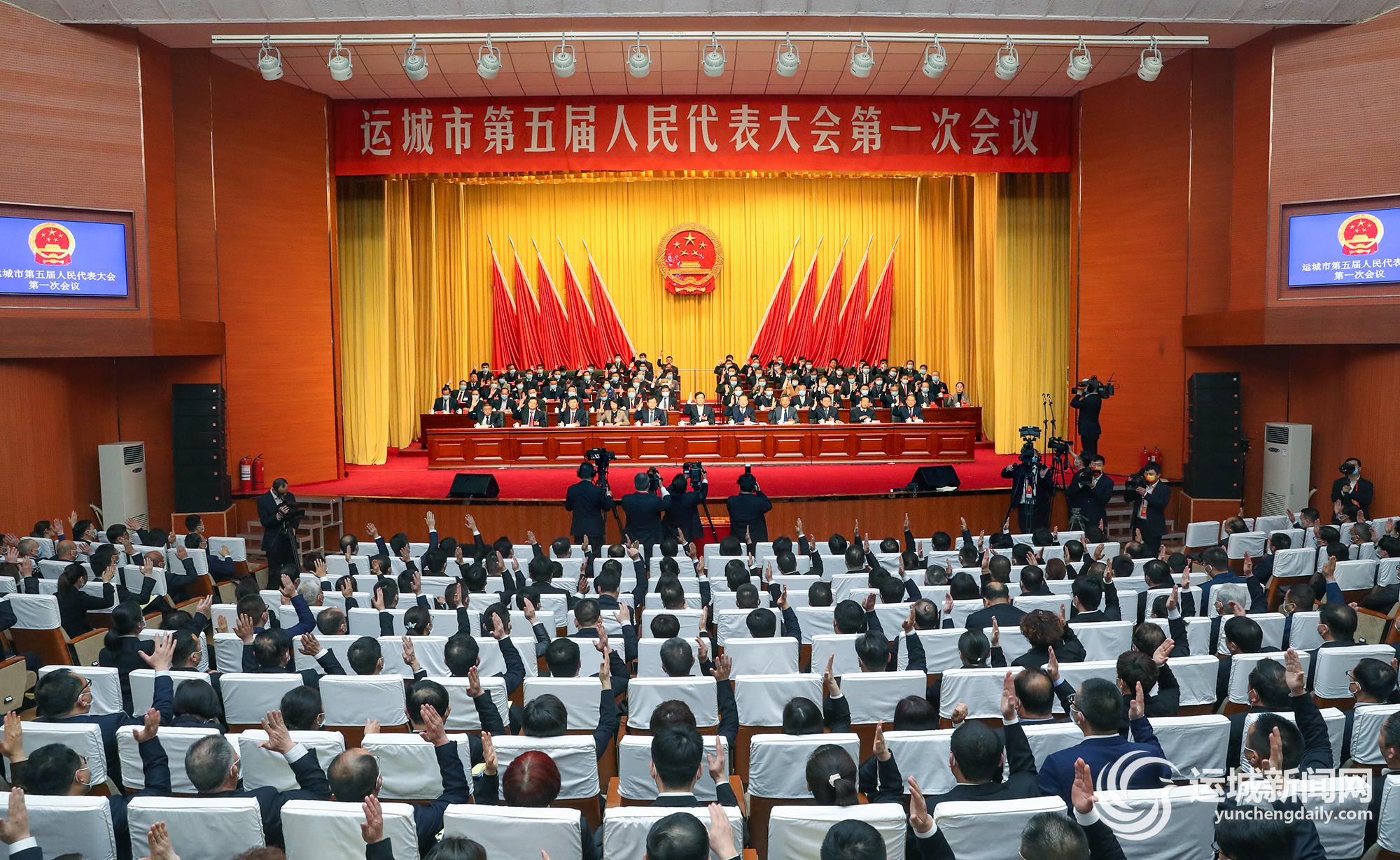 2月24日,运城市第五届人民代表大会第一次会议闭幕。图为代表表决通过有关决议。记者 雷哲侠 闫 鑫 陈方斌 摄
