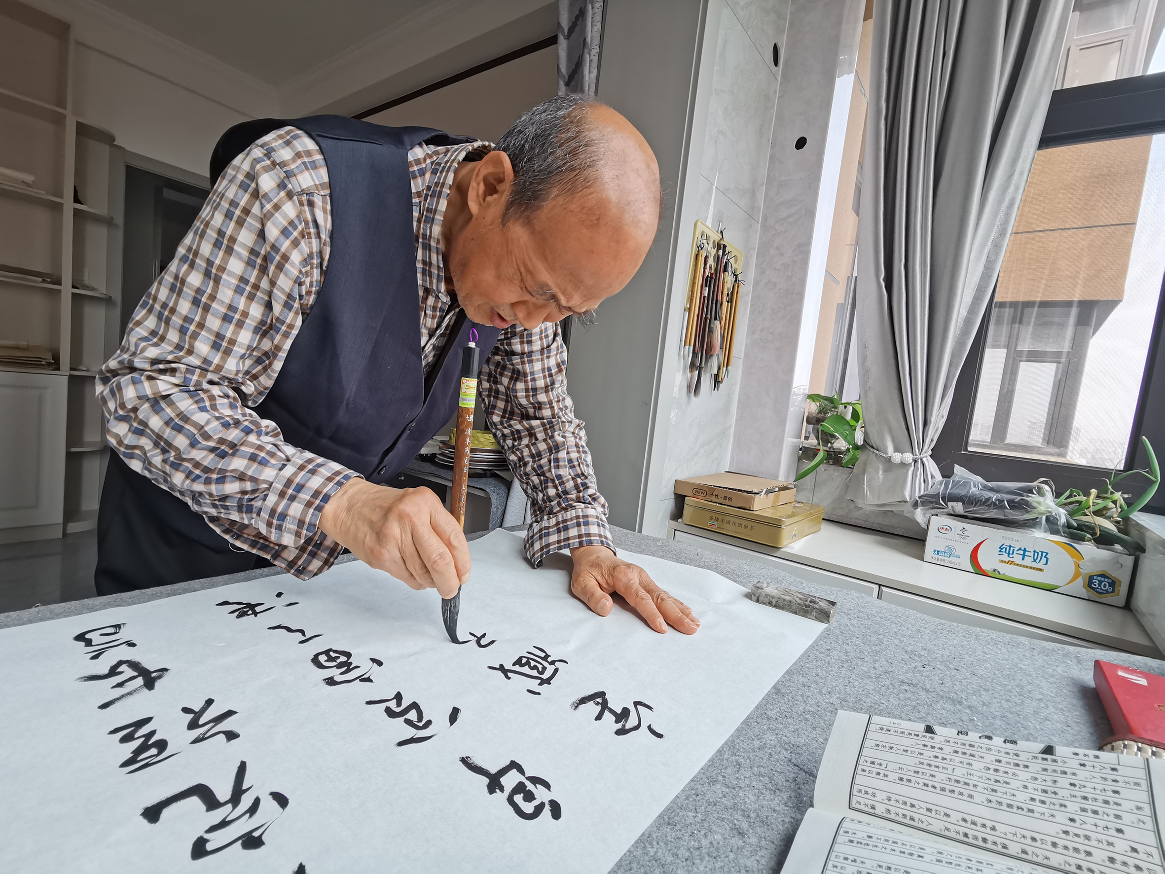 对于朋友的夸赞,老凹先生觉得受之有愧,“中华文化源远流长,书法更是博大精深,我能做的就是学习学习再学习,能将胸臆付笔墨即可”。