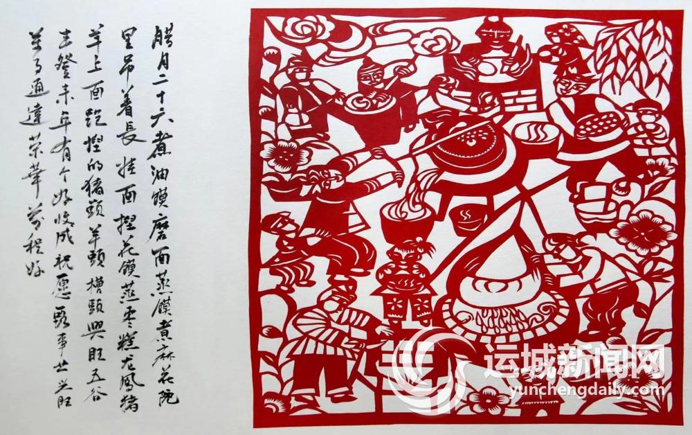 民间的剪纸,大多反映逢年过节,婚生嫁娶,寿诞喜庆之事。老人也通过剪纸,回忆自身美好的记忆,创作了《迎亲》《过年》等反应河东民俗的作品,而且几乎每幅剪纸都是一连串故事,仿佛一首首歌谣勾起人们的回忆,引起人们的联想,唤起人们对幸福生活的展望。