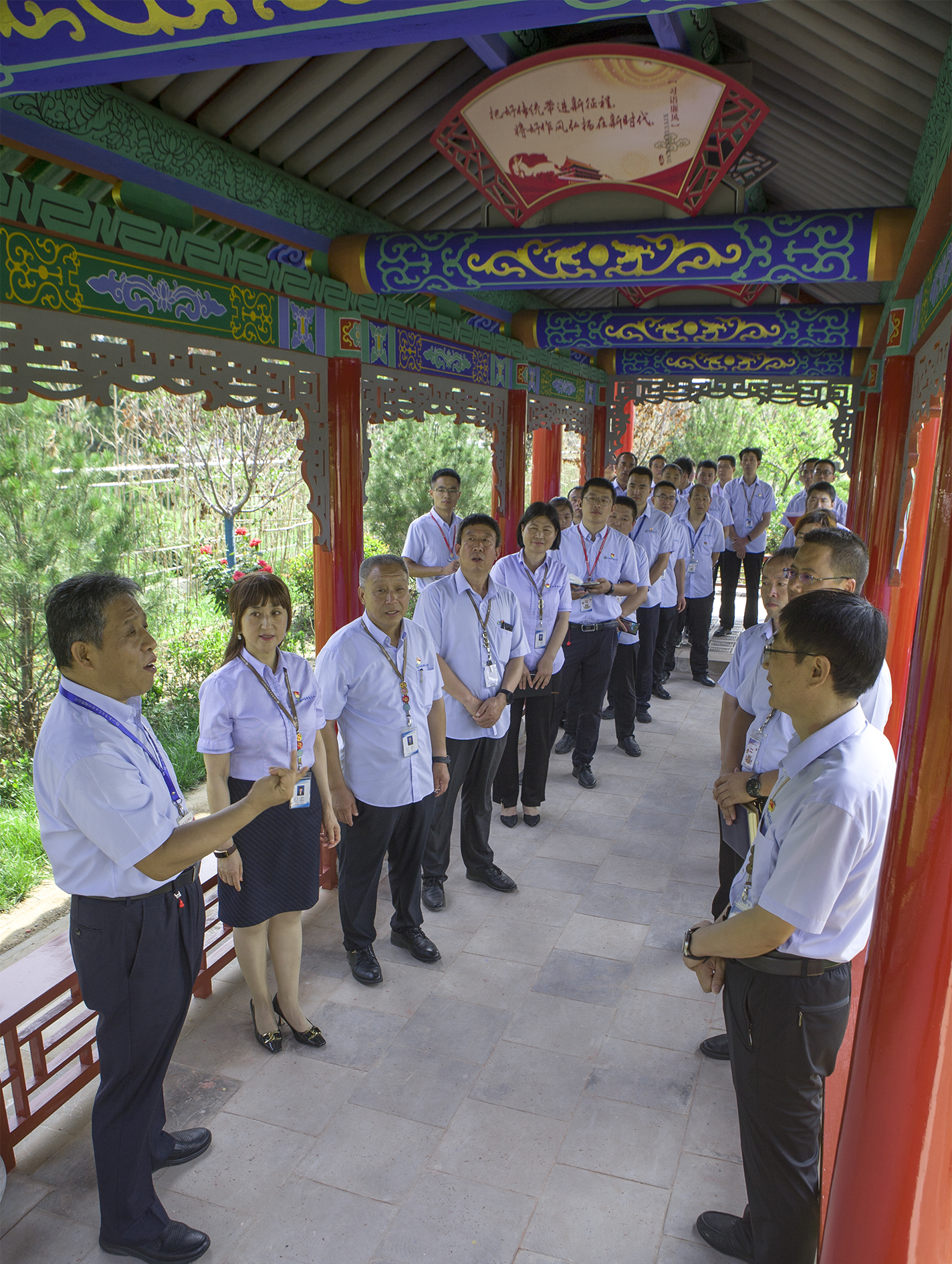 图为公司党总支近日组织党员和入党积极分子,在“清园”长廊学习廉语谈体会。特约摄影 李克荣 摄