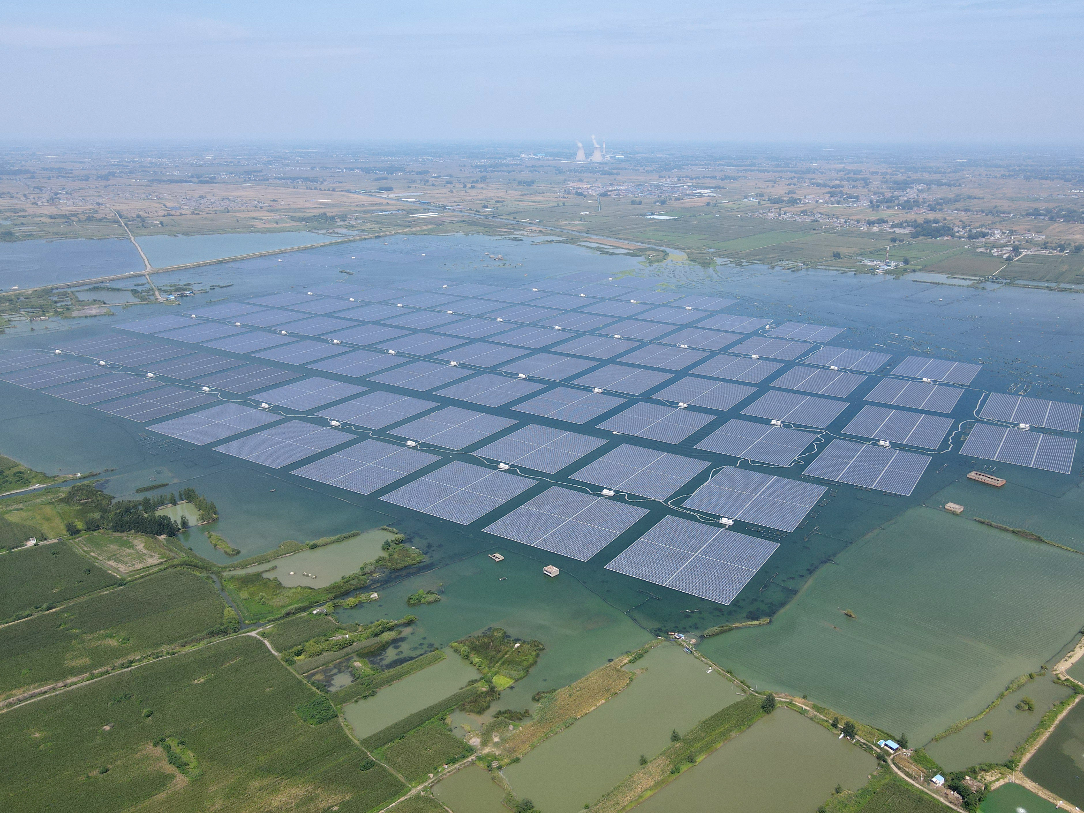 8月25日拍摄的安徽省阜阳市古城镇毛圩水上光伏电站。