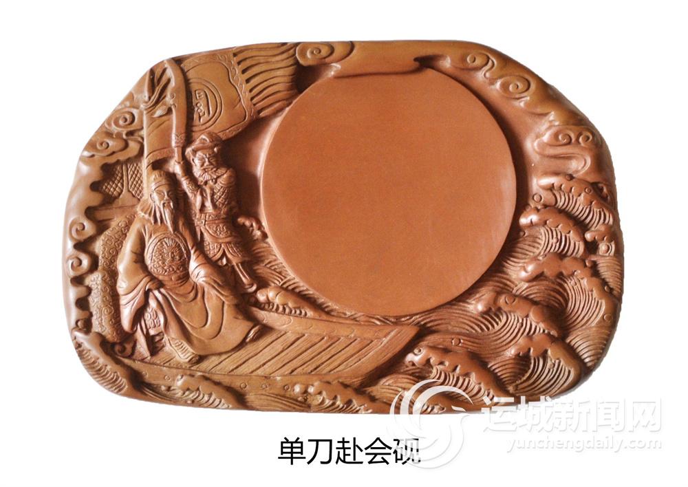 ▲这是新绛县绛州澄泥砚研制所精心制作的“关公系列”澄泥砚。关公夜读《春秋》、单刀赴会、华容道义释曹操等人们耳熟能详的故事,通过艺术化的手法处理,以澄泥砚为载体,更生动形象地呈现在人们面前。