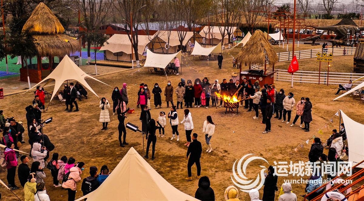 12月11日傍晚,夏县南大里乡德兰度假村,一群户外爱好者围着篝火载歌载舞。 特约摄影 张秀峰 裴国峰 摄