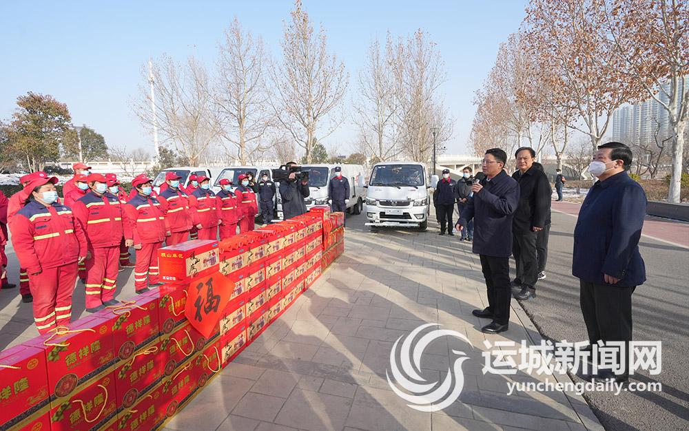 运城日报讯(记者 张 越)临近春节,岁寒情暖。1月18日,市长储祥好深入一线看望慰问环卫工人、新闻工作者、武警和公安民警,并通过他们向节日期间奋战在全市各条战线的广大干部职工致以新春问候和美好祝愿。市政协主席张润喜,市委常委、宣传部部长、统战部部长王志峰,副市长、市公安局局长刘春安,市政府秘书长王红波一同慰问。