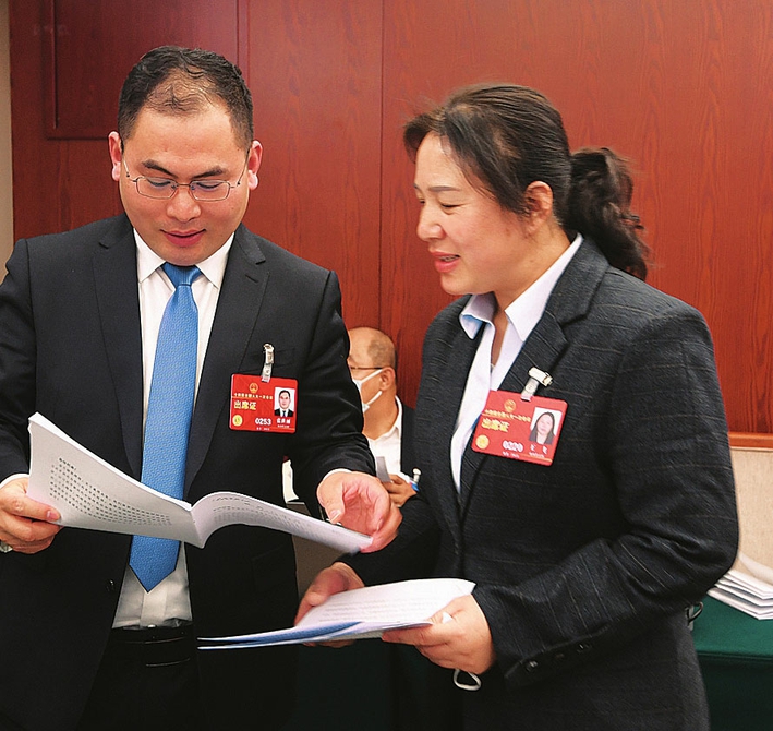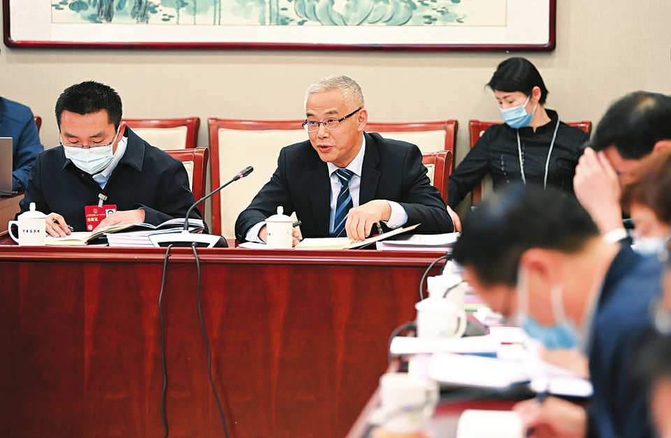3月7日,山西代表团举行小组会议,审议立法法修正草案,代表们畅所欲言,在交流中形成共识。图①为李建国代表在发言。图②为张世丽代表(左)和王飞代表在交流。图③为盛更红代表在发言。