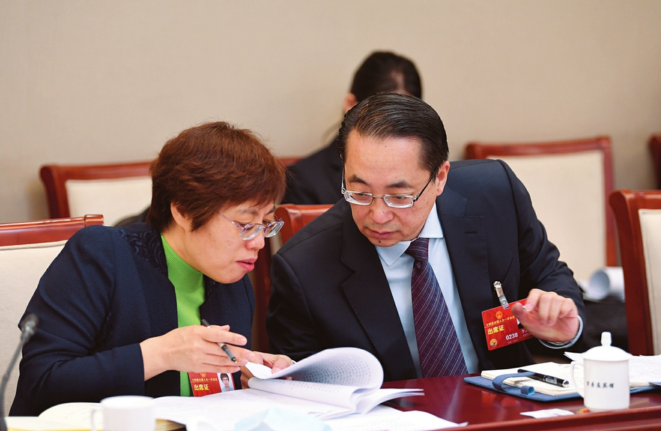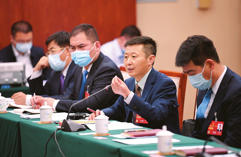 3月9日,山西代表团审议“两高”工作报告,代表们围绕扫黑除恶、打击金融犯罪、优化营商环境等社会关切问题进行了热烈讨论。图①为刘正代表在发言。图②为吴秀玲代表(左)和李云峰代表在交流。图③为刘文华代表在发言。
