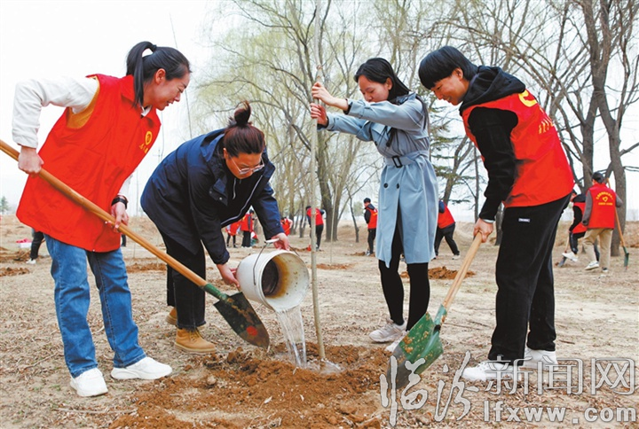 临汾新闻网讯 3月10日,襄汾县西贾乡干部职工在双龙湖湿地公园义务植树。连日来,襄汾县积极开展多种形式的植树造林活动,用行动美化家园,为大地增添新绿。李现俊 摄