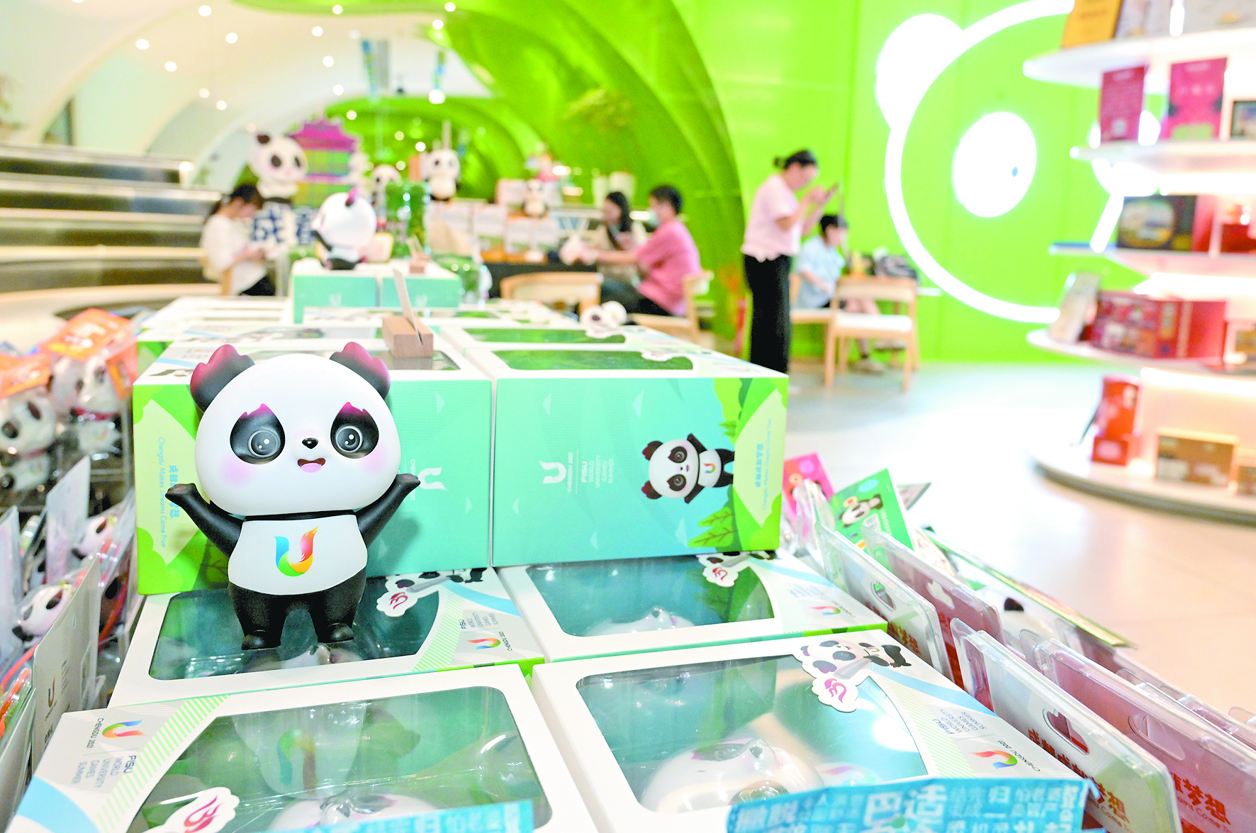 近日,在成都市暑袜街的熊猫邮局旗舰店内,第31届世界大学生夏季运动会吉祥物大熊猫“蓉宝”等特许商品被单独展示。熊猫邮局是中国邮政旗下的特色文创品牌,以当下年轻人喜爱的“文创+”方式诞生,以大熊猫IP——熊猫YOYO为载体。在大运会即将到来之际,熊猫邮局为吉祥物“蓉宝”等特许商品开辟特别展示区,在迎接大运会的同时为成都打造了又一个宣传熊猫形象的平台。
