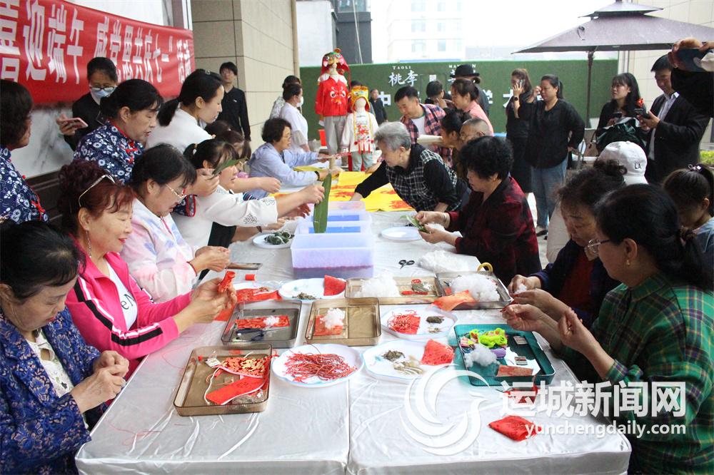 6月18日,在闻喜县西城社区桃李华都小区,社区工作人员与居民一起包粽子、做香包,迎接端午节。