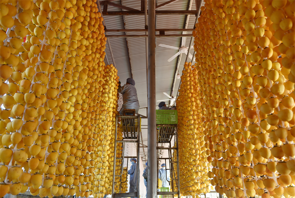 河南省禹州市磨街乡刘门村依托当地的自然资源和地理优势,采用“公司+合作社+农户”的运营模式,以村集体企业为主导,带动村内相关经营主体,按照“种植技术统一、加工标准统一、包装品牌统一、销售模式统一”的原则,大力发展柿子种植加工产业。目前全村柿子种植面积达4800多亩,入选全国“一村一品”示范村镇名单,实现柿子产业和生态旅游的初步融合,逐渐闯出一条富有特色的乡村振兴之路。 新华社记者 鲁 鹏 摄