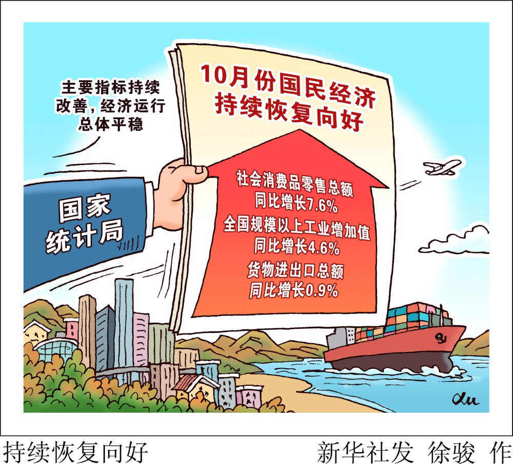 国家统计局11月15日发布的数据显示,10月份,国民经济持续恢复向好,生产供给稳中有升,市场需求持续改善,就业物价总体稳定,转型升级扎实推进。