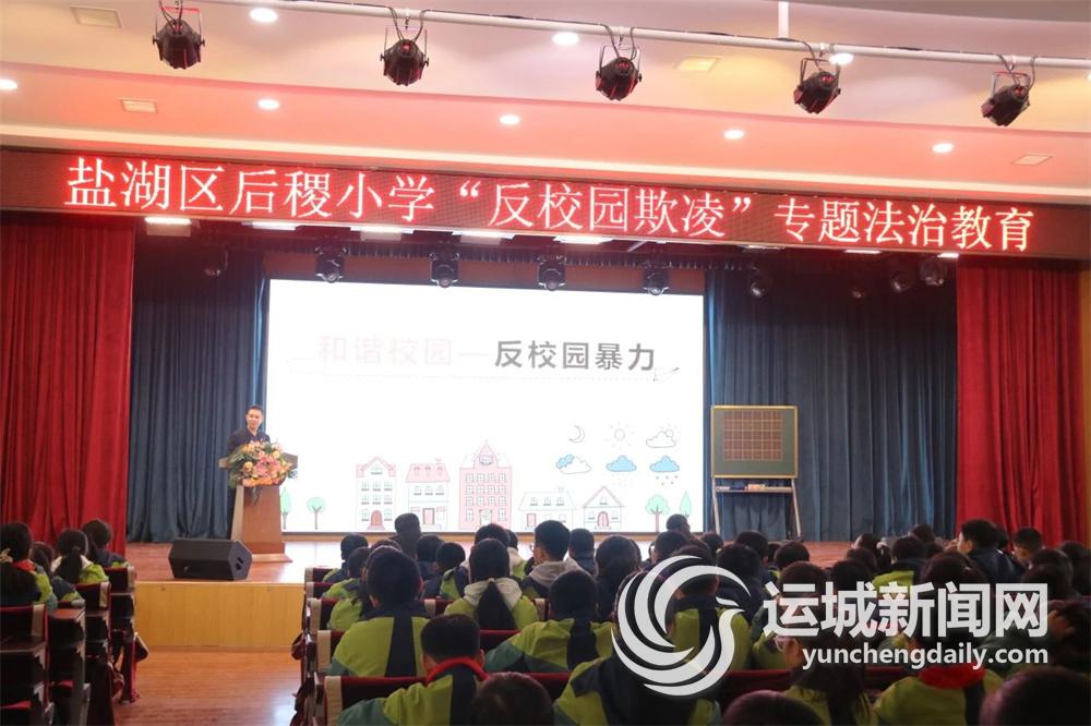 运城晚报讯(记者 李婉玉)为进一步构建平安校园,提高学生的安全防范意识和自我保护能力,近日,盐湖区后稷小学邀请家长代表、山西辰霄律师事务所律师孙林峰,给学生们上了一堂以“反校园欺凌”为主题的法治安全课(下图),为孩子们的安全保驾护航。