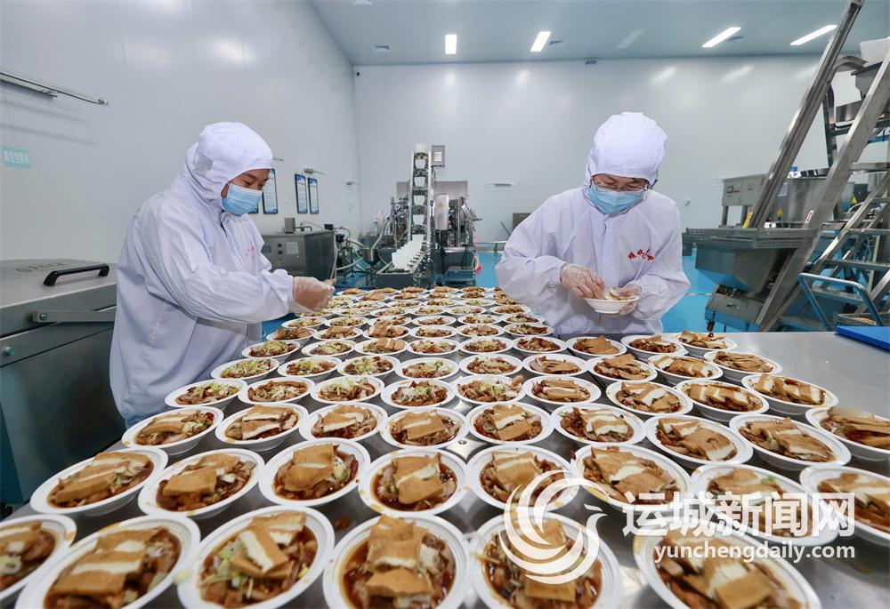 山西晋星集团旗下晋星食品厂工人在制作卤鸡等食品。