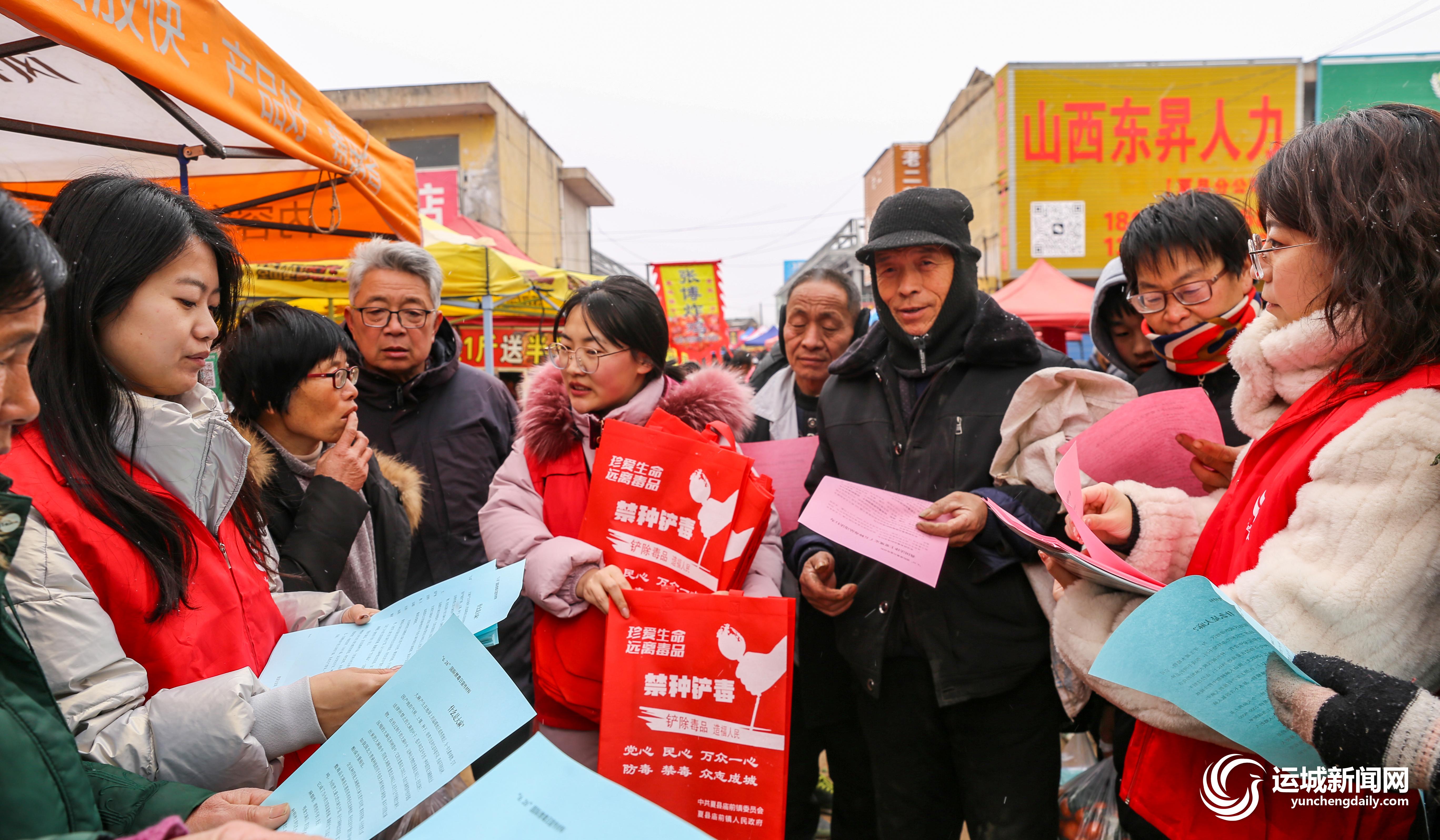 2月5日,志愿者在夏县庙前镇的集市上开展禁种铲毒宣传活动,进一步增强群众的防毒、拒毒、禁毒意识。
