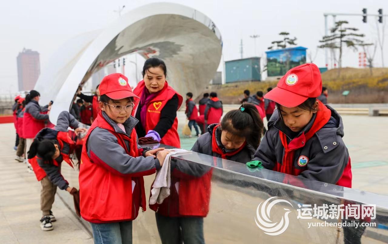 3月5日,夏县瑶峰镇城关中心校南关小学开展“学英雄、见行动、人人争当活雷锋”主题活动,党员教师带领小学生在白沙河湿地公园擦拭历史名人雕塑、护栏,让雷锋精神代代相传。