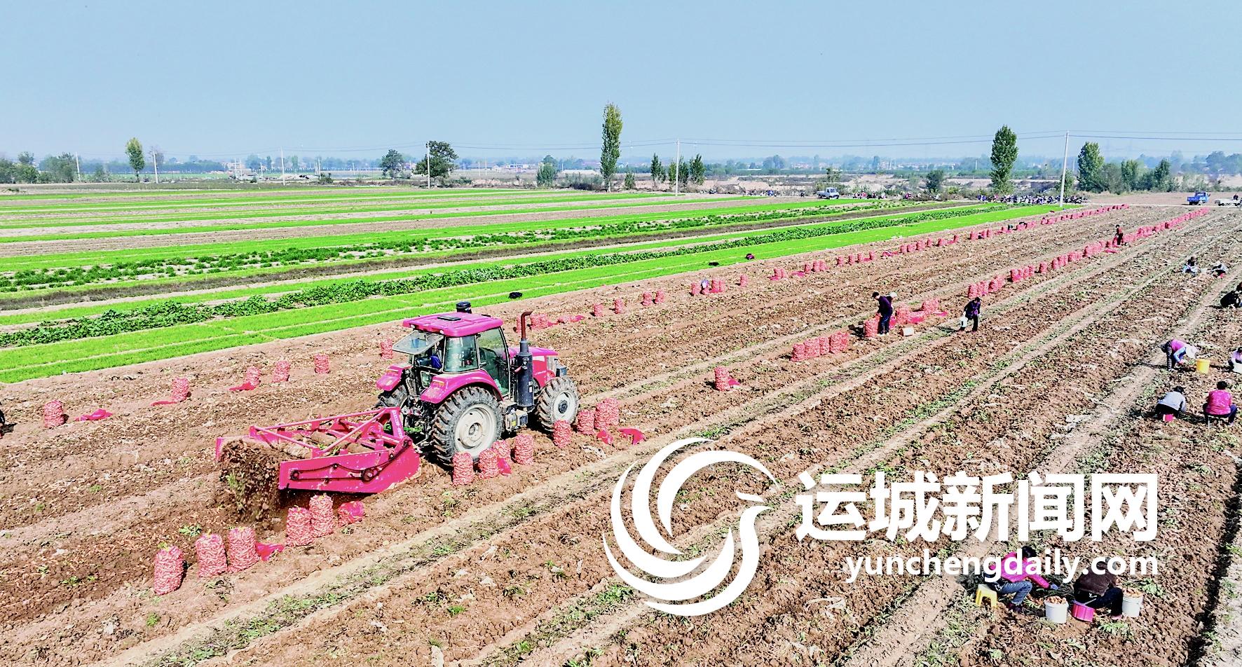 11月7日,在夏县瑶峰镇周村,农民驾驶农机、组织人力抢收地黄,供应市场。