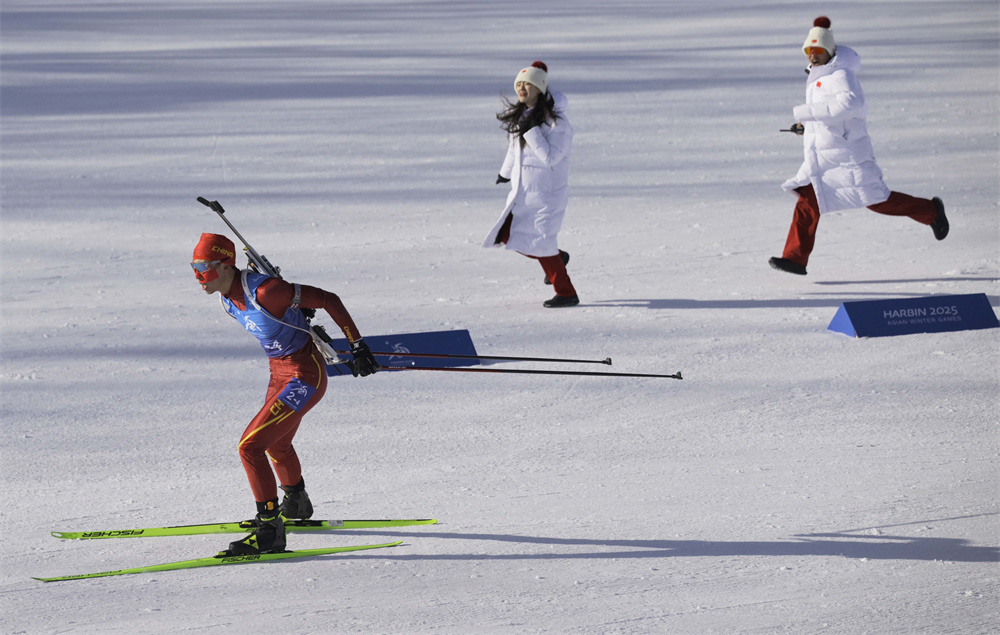2月13日,第九届亚冬会冬季两项男子4x7.5公里比赛在亚布力举行。中国队获得季军。