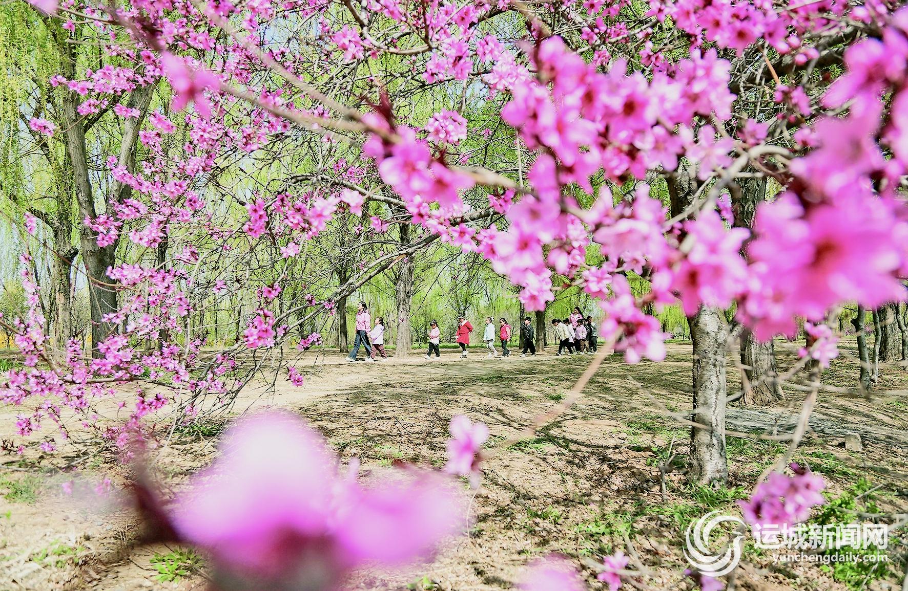 4月3日,游客在山东省东营市广饶县李鹊镇一公园踏青赏花。新华社发(陈其保 摄)