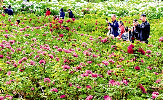 近日,天鹅湖国家城市湿地公园牡丹园内的牡丹次第绽放,姹紫嫣红的花朵将园区装扮得春意盎然,吸引众多游客前来参观游玩。 杜杰 摄