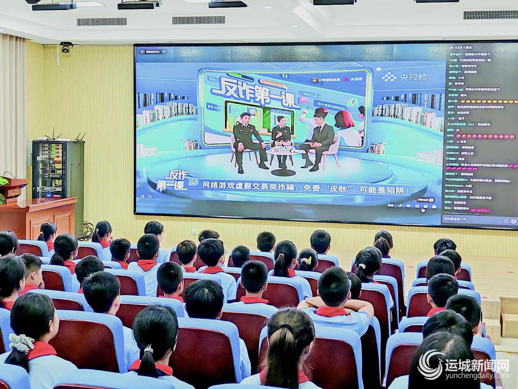 在运城市大运小学的主题班会上,老师给孩子们介绍了网络安全的相关知识和防范诈骗的方法,告诉小朋友们不随意扫描二维码、点击不明链接,保护好自己的隐私和财产安全。