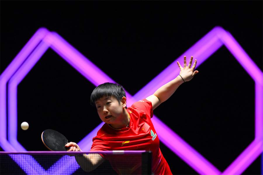 9月10日,中国选手孙颖莎在比赛中。