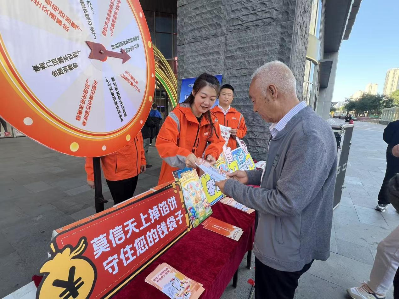 在金融教育宣传专区,一个趣味十足的“金融安全知识转盘”吸引了众多市民参与。转盘上涵盖“如何识别电信诈骗”“金融消费者有几项权益”“反诈电话是多少”等实用问题,消费者通过转动转盘互动答题,不仅学习金融知识,还能收获定制的安全宣传礼品。“这种方式太有趣了,我刚才转到了“如果接到电话说您中奖了,应该怎么办?”的问题,金融教育宣传志愿者还跟我详细讲了金融诈骗的常见套路,以后遇到类似情况肯定不会被骗了!”参与互动的张女士兴奋地说。同时,金融教育宣传志愿者向市民发放金融知识宣传折页,用通俗易懂的语言解析非法集资、保险欺诈等金融风险,传授辨别金融骗局、维护自身权益的技巧,将金融风险的理念传递给每一位参与者。