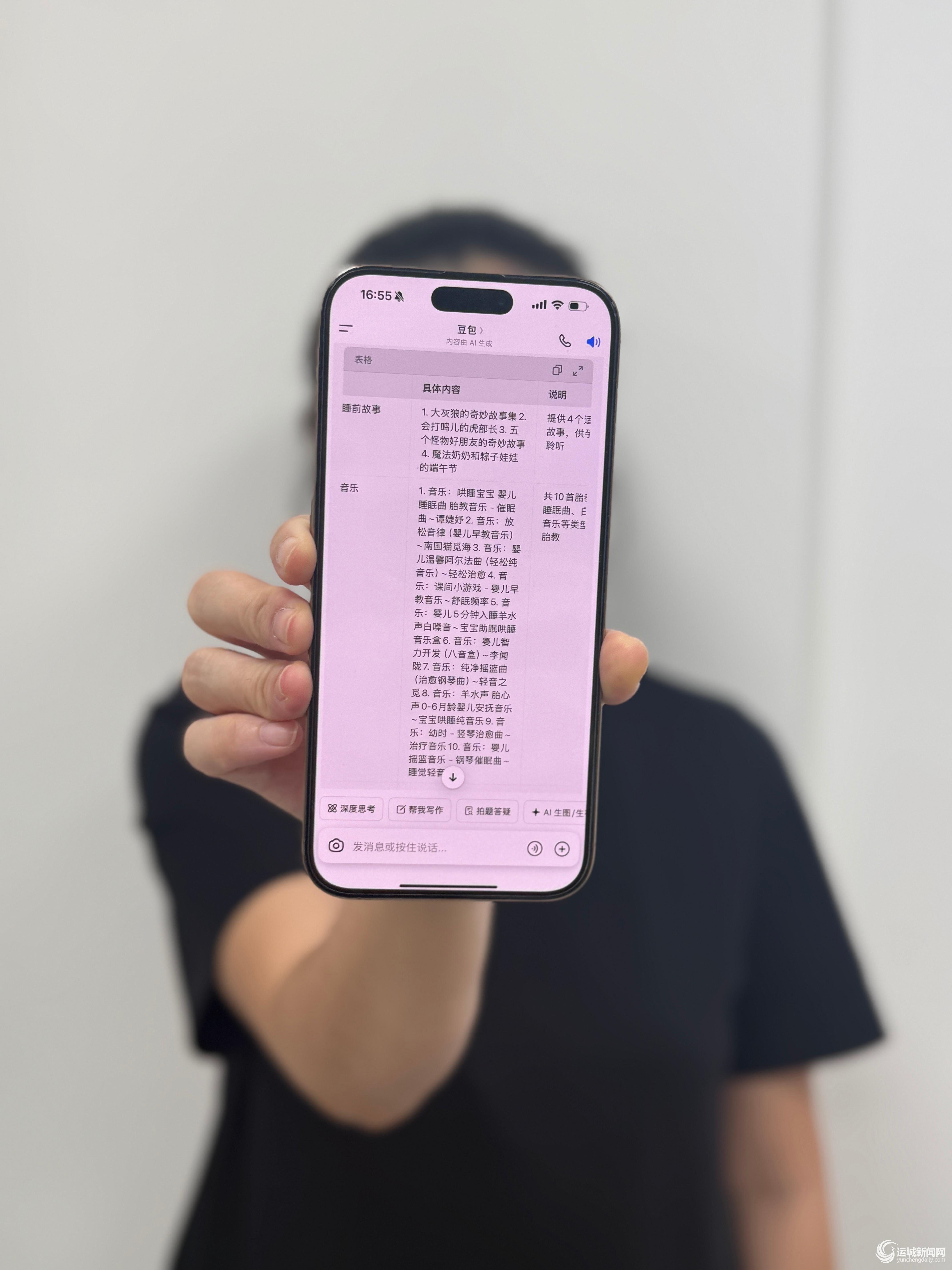 “有时候我不知道该和宝宝说些什么,AI会给我提供对话灵感。”豆豆说着,拿出手机演示,“你看,我输入‘今天阳光很好,给我推荐一些和宝宝分享的话题’,AI立即建议我描述阳光的温暖、窗外的景色,甚至教我如何用中英双语说‘妈妈爱你’。”
