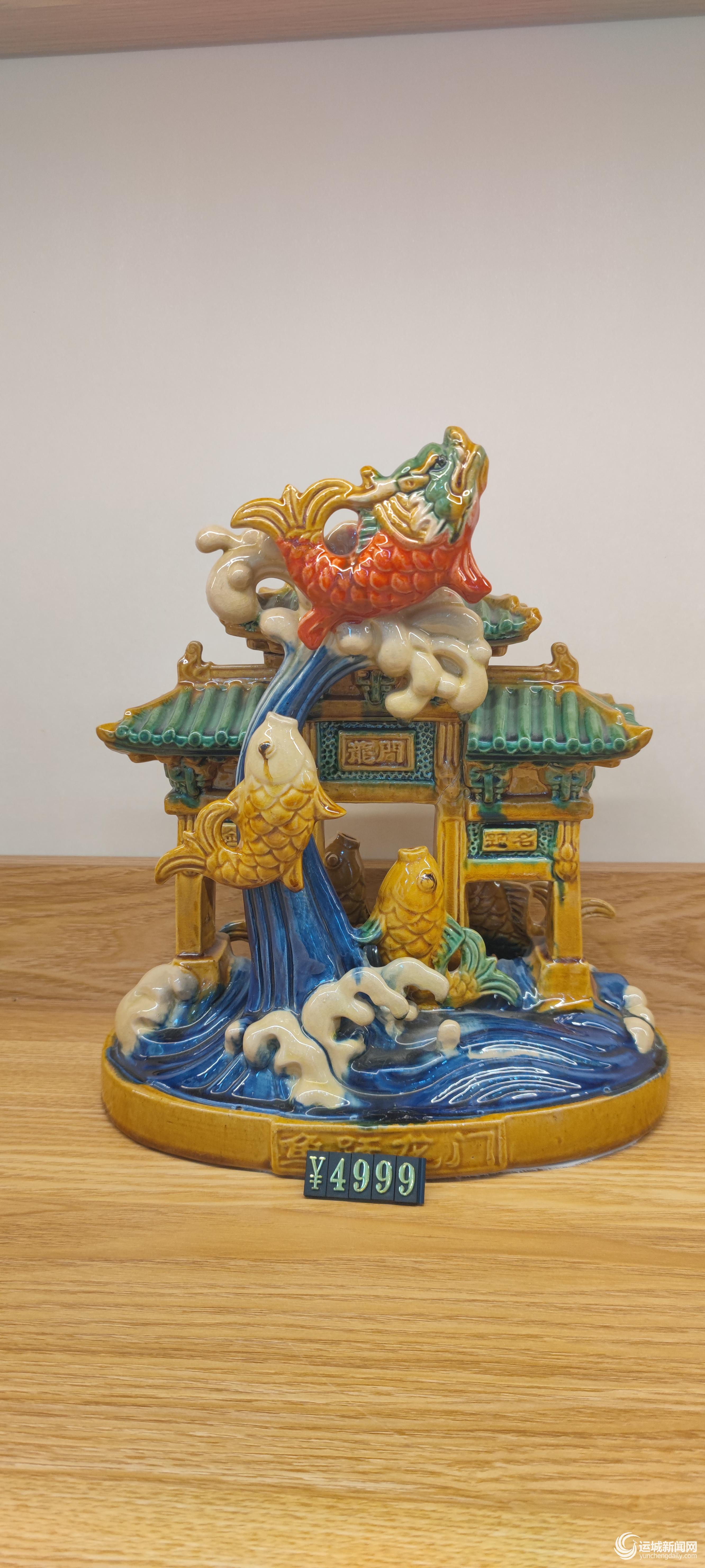 运城工艺美术馆展出的琉璃工艺品“鱼跃龙门” 记者 刘亚 摄