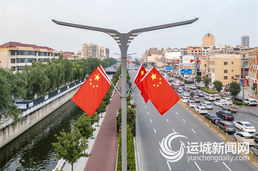 国庆节临近,中心城区主要街道挂起一面面国旗,营造出喜庆祥和的节日氛围。 记者 茹雅 摄
