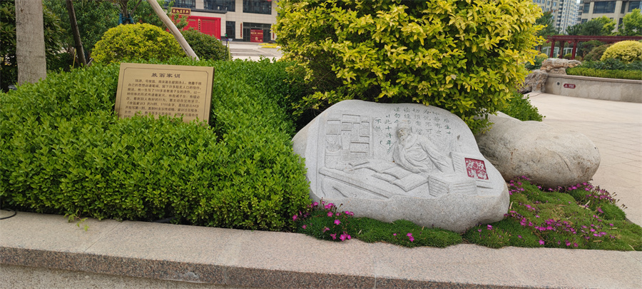 运城市鼎鑫华府小区“放翁家训”石雕 记者 刘亚 摄