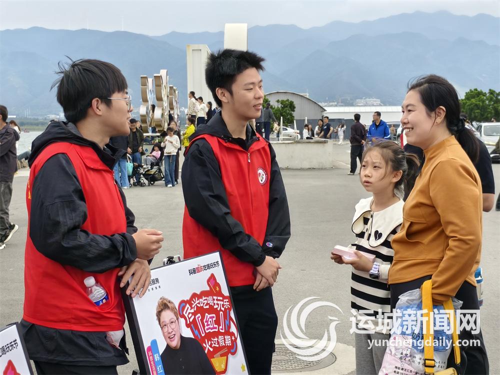这个国庆假期,盐湖区青年志愿者协会共组织百余名青年志愿者,在运城盐湖景区开展“盐湖V站·助力文旅”志愿服务活动。从迎薰门外广场到游客中心,从盐湖湖畔到湖心岛,游客需要的每个角落,都能看到这些年轻而忙碌的身影。