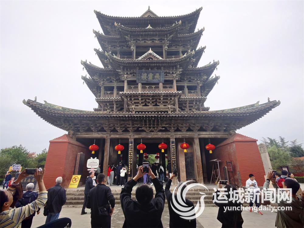 国庆中秋假期,万荣县飞云楼景区游人如织。